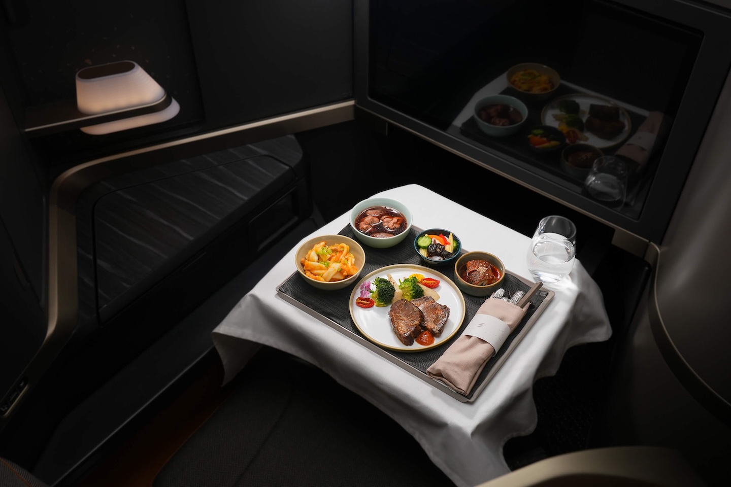 除了硬體升級,星宇也從細節著手,包括優化飛行路徑、調整備用燃油配置與定期清潔發動機等,累積數千噸減碳效益。同時,永續概念也延伸至機上服務,從環保備品、在地食材餐點到電子閱讀,逐步打造低碳飛行體驗。