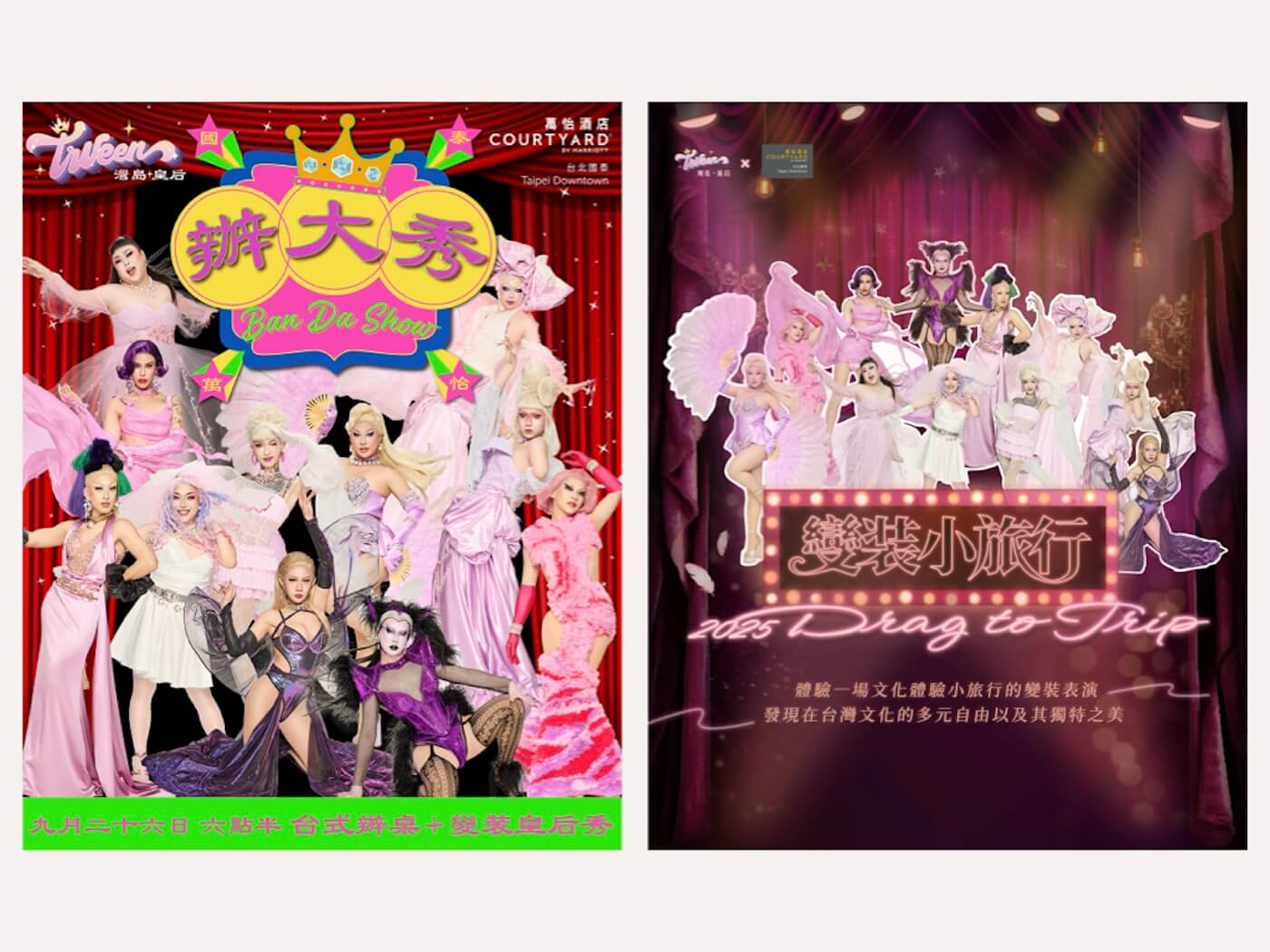 這份感觸,在遇到具備行銷背景的 Toby 後,轉化成了具體的行動。當時 Toby 剛好處於轉職期,且長期關注變裝文化,曾製作過相關的 Podcast。兩位同樣來自高雄的人一拍即合。當時,台灣皇后妮妃雅(Nymphia Wind)入選美國《魯保羅變裝皇后秀》,兩人意識到,將這份文化產業化的時機已經成熟。