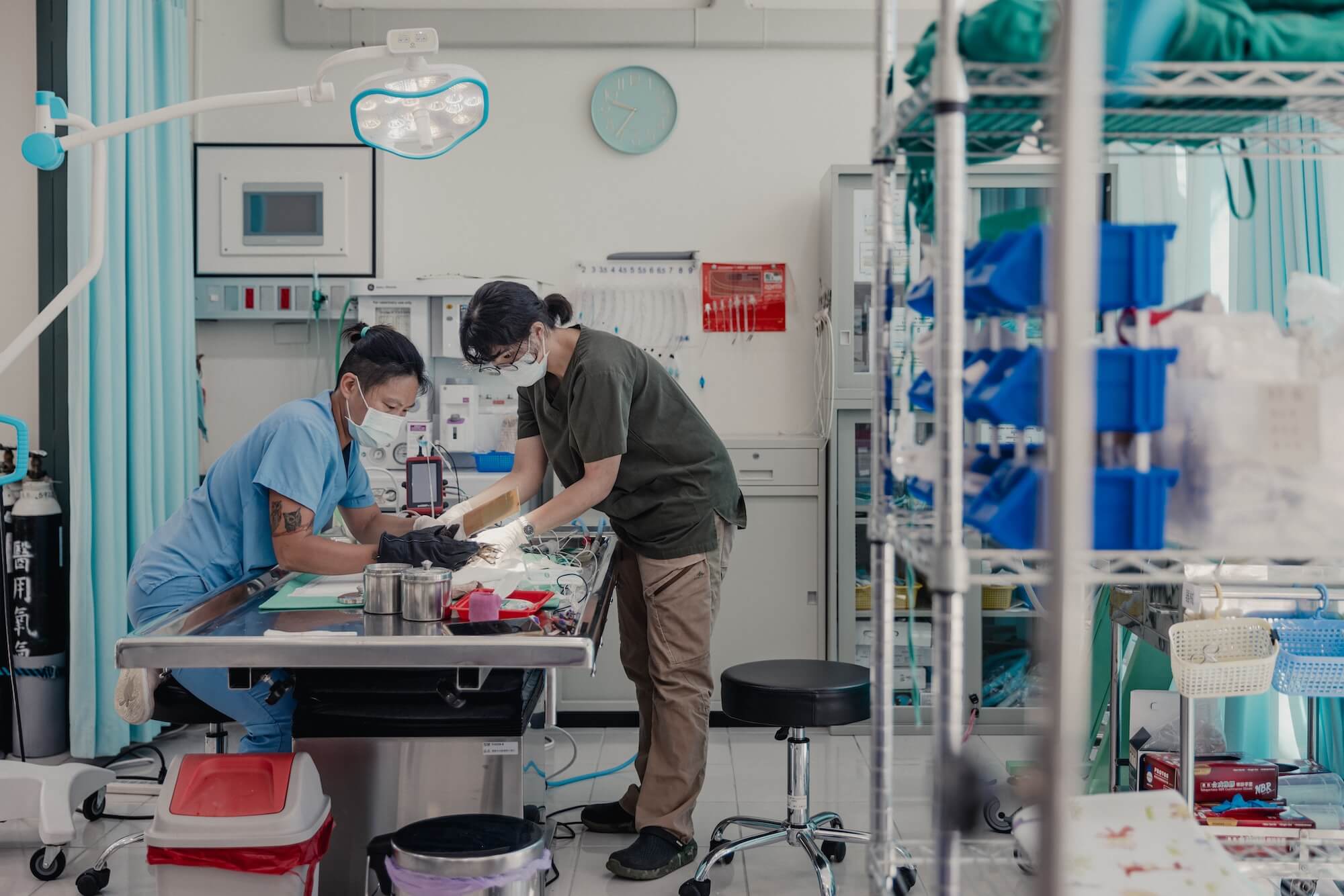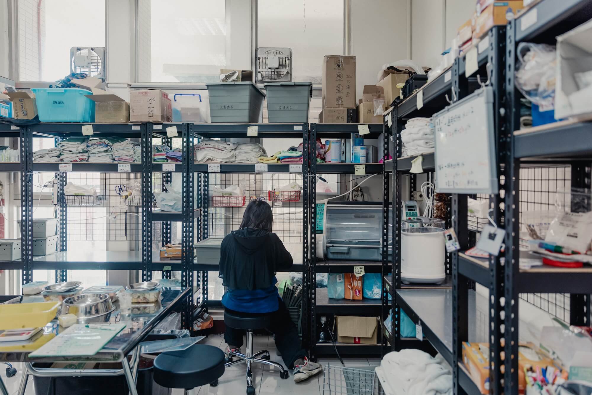 早上八點半,輕聲微步踏入WildOne野灣非營利野生動物醫院,跟隨保育員進入工作範圍,打開門旋即看到忙碌的餵養現場。有限的空間蘊藏無限生命的延續,保育員細心呵護手中嗷嗷待哺的身軀。飼養櫃上標註關於牠們的食物配方,「容我說明一下,盡量不要拍到食用資訊,我們擔心會被民眾如法炮製,自行調理餵給野生動物食用。」提醒動物生命的維繫是牽一髮而動全身,馬虎不得。