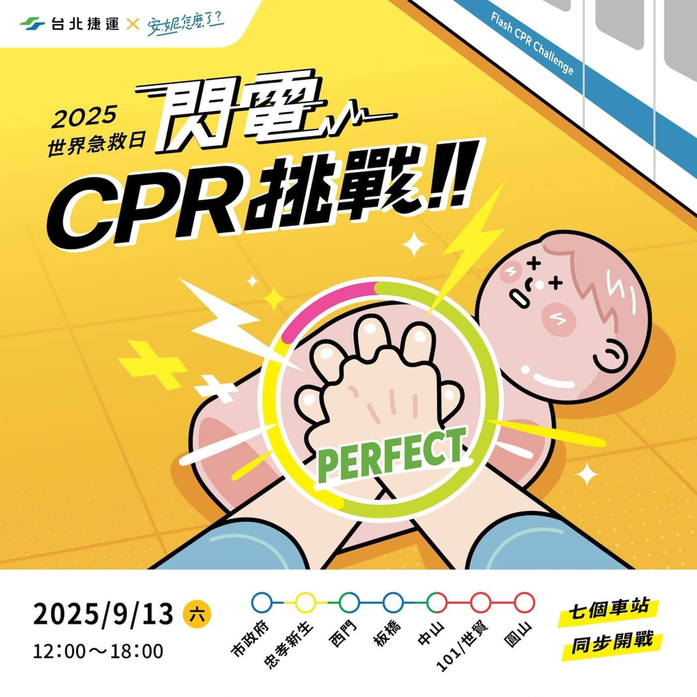 捷運月台上實施 CPR,30 秒按壓、整個活動 1 至 2 分鐘內結束,車來了,人離開。如此快閃,更象徵「當一個人真的心肺功能停止的話,如果你不立刻做點事就來不及了。」陳鋇涵仔細說明「閃電 CPR 挑戰」的設計,活動當日引來許多民眾參與,無論童叟、國籍,乃至身障人士都願意嘗試操作。