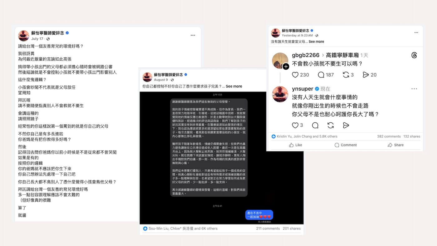 「看很久了,真心覺得實在是受不了了。」談及介入的動機,蘇怡寧的回答相當直接。他表示,網路上對孩童不友善的聲量與日俱增,已到了一個他無法再忽視的地步。「總覺得,應該要有人出來做些什麼事吧。」那則機上抱怨的貼文,便成為他行動的觸發點。