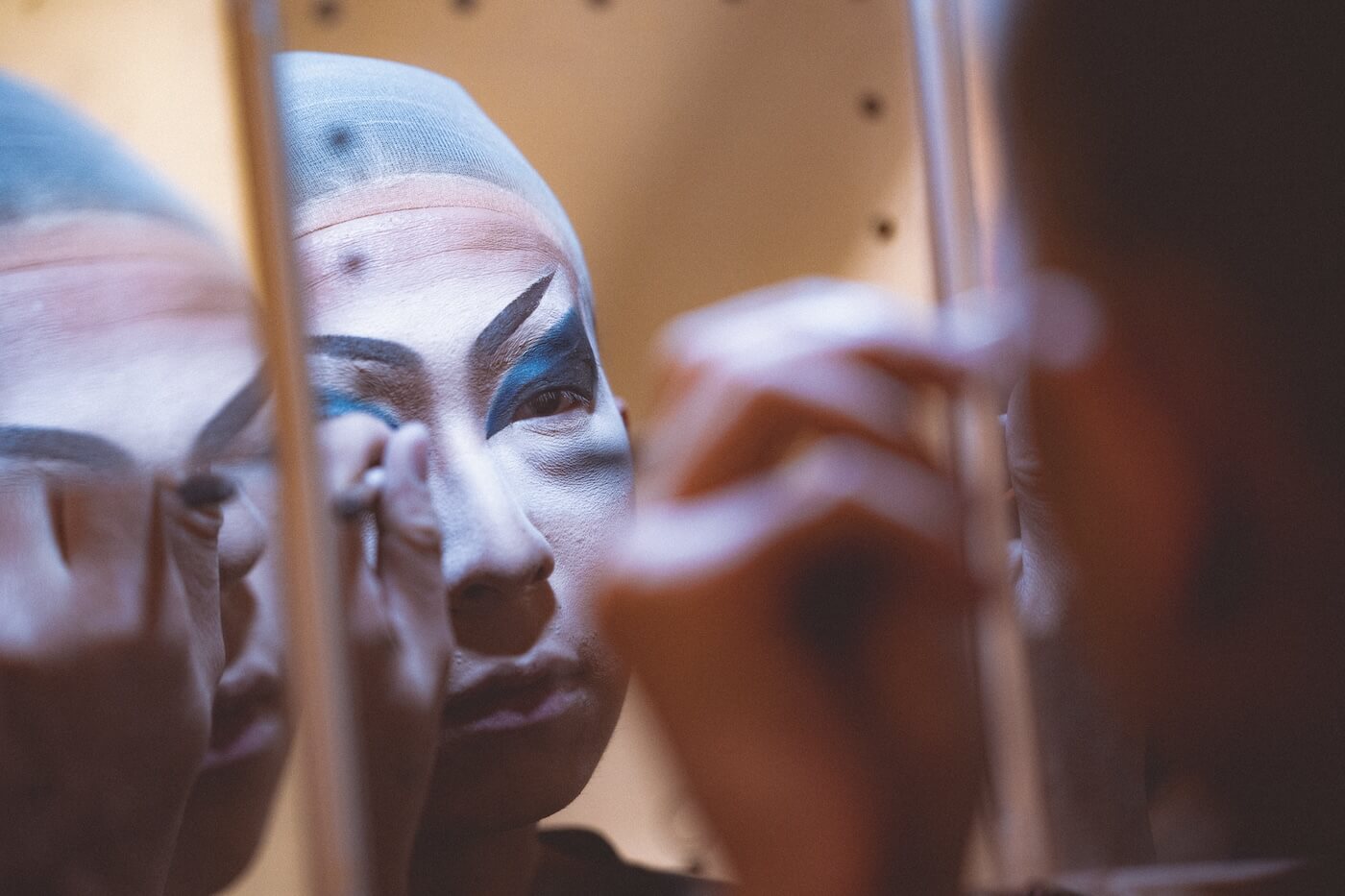 穿戴假奶前,Sandra 得先卯起來往身上倒櫻花香爽身粉,如此一來才好穿脫。睫毛如瀑,藍白交疊的眼影覆蓋了原生的單眼皮,粉底與鼻影則勾勒出更立體的輪廓——這副妝容已經畫了兩個小時,距離完備只差臨門一腳。