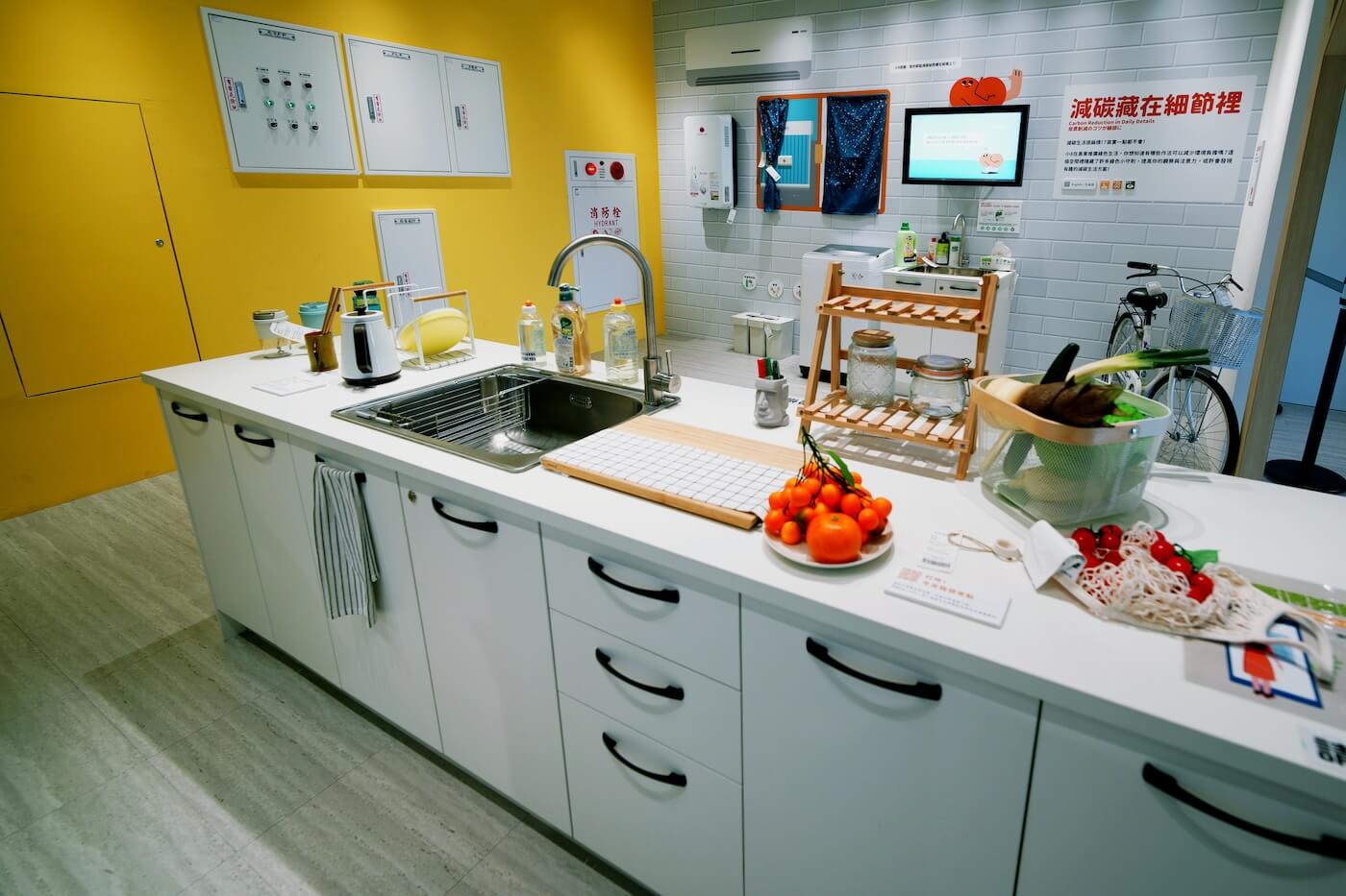 「當初在規劃這個場館時,我們就希望它不要看起來『太環保』,避免讓人產生距離感。」於是,團隊除了打造俏皮的吉祥物「大山」、「小8」與「一一巡守」陪伴參觀者探索,展間也特意避開生硬的標語和滿牆數據圖表,改以互動關卡、沉浸式情境與日常生活物件呈現議題。