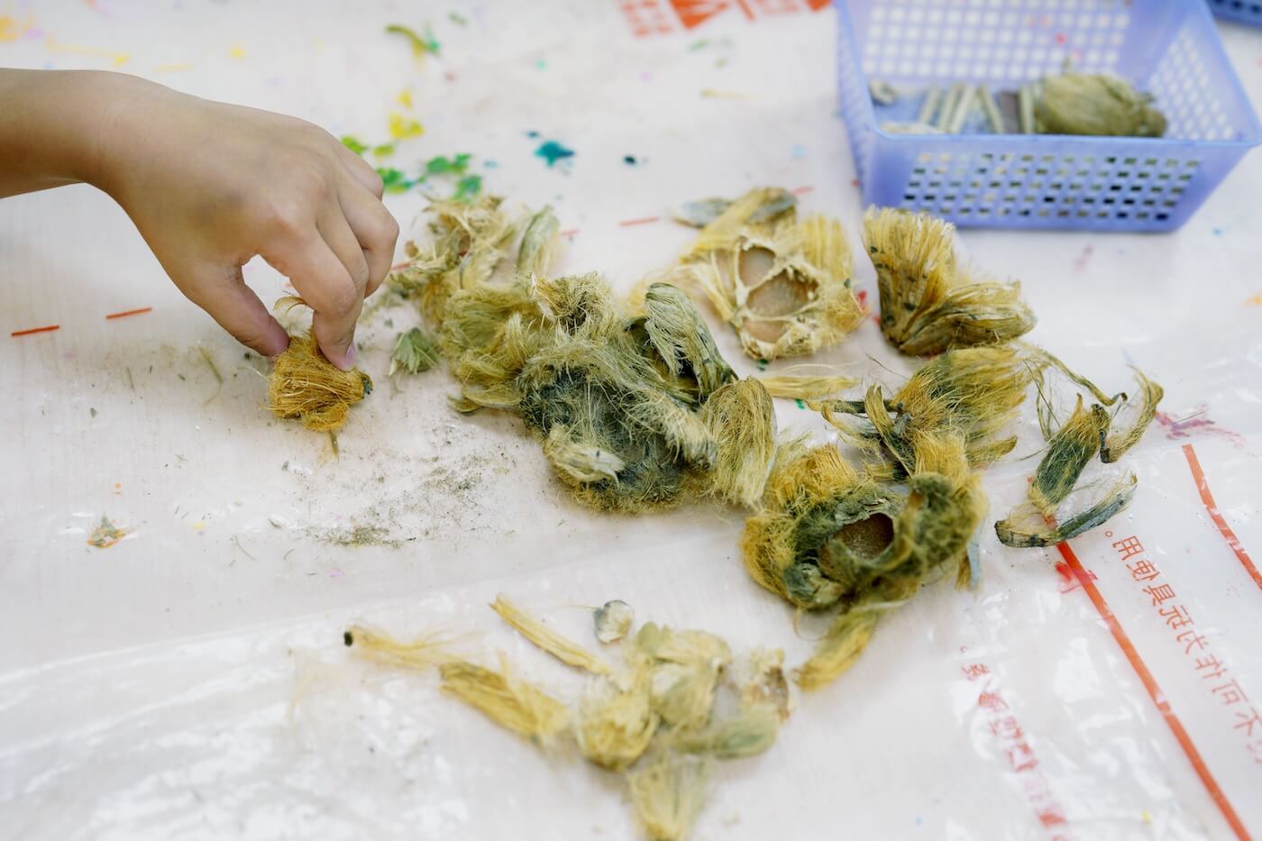 提出這項企劃的志工講師觀察到,檳榔樹雖是在地常見的經濟作物,但多數人對其構造與用途其實並不熟悉。於是,他蒐集廢棄的檳榔果實,搭配回收竹筷設計課程,帶領孩子動手製作的同時,也引導他們思考身邊的自然素材與廢棄物如何再利用。