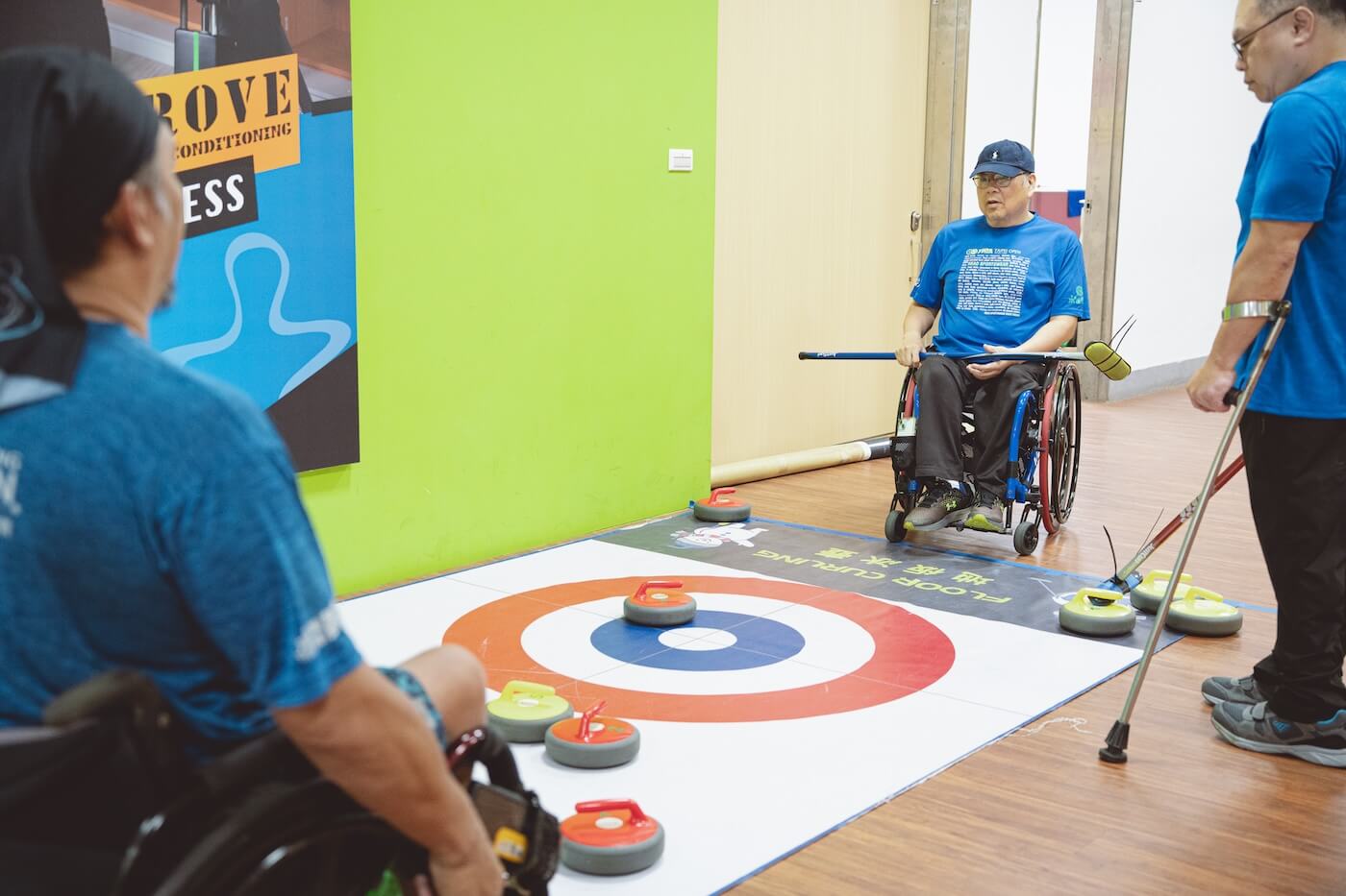 輪椅夢公園更提供羽球、瑜伽、擊劍與水域活動等多元課程,並備有手搖車、運動輪椅等輔具供租借。放眼望去,有人趕著參加活動;有健全親友與輪椅使用者結伴而至後分道揚鑣,一個去準備去跑步、一個推著自己去鍛鍊身體;也有三三兩兩的人移動著輪椅,開始聚在場館練習冰壺,冰壺相互撞擊產生聲響碰撞聲、笑聲與討論聲交織,空間氛圍像水一般自然流動——每個人都能在這裡找到屬於自己的天地。