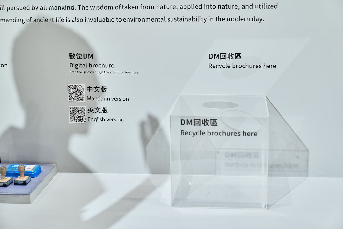 團隊也在展場設置 DM 回收箱,工作人員會從裡面整理出外觀完整的紙本 DM 繼續供其他觀展者使用,接著掃描 QRCode 也能夠觀看數位版本的 DM。經導覽員解釋後,觀眾常發出理解讚嘆,原來就連隨手丟棄的 DM 也能循環再利用。這些小互動讓十三行的夥伴相信,永續種子確實能潛移默化植入人心。此外,他們也透過「考古生活節」或與綠建築旅館合作,搭建交流平台,共探文化觀光與永續的更多可能。