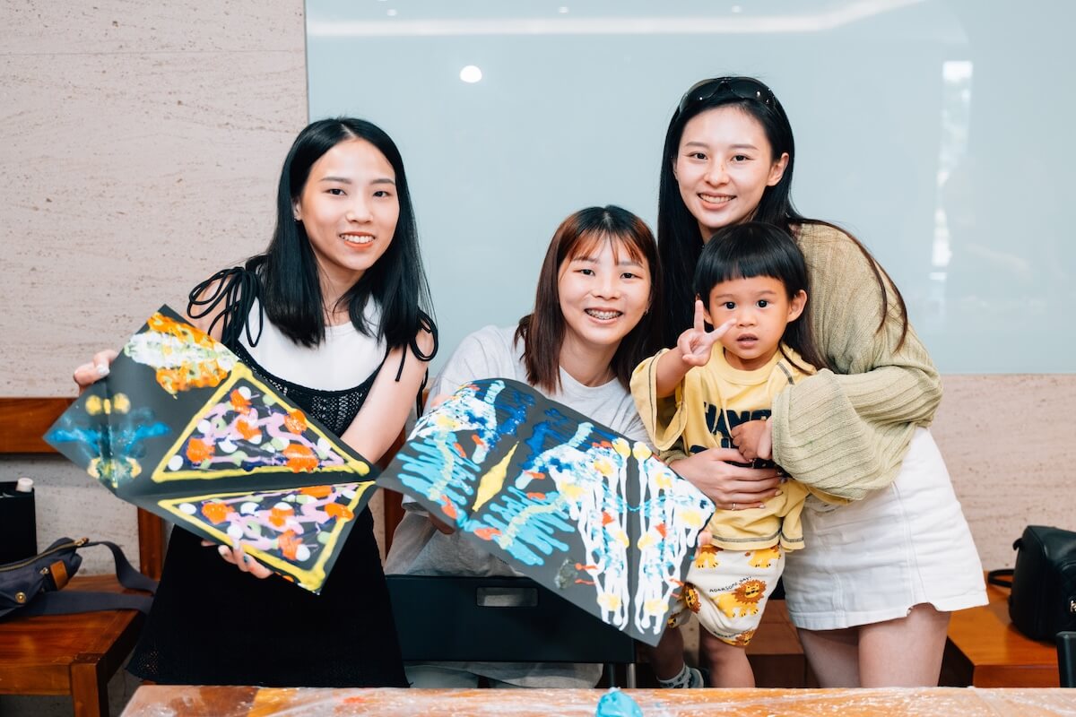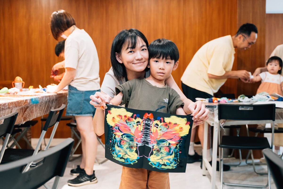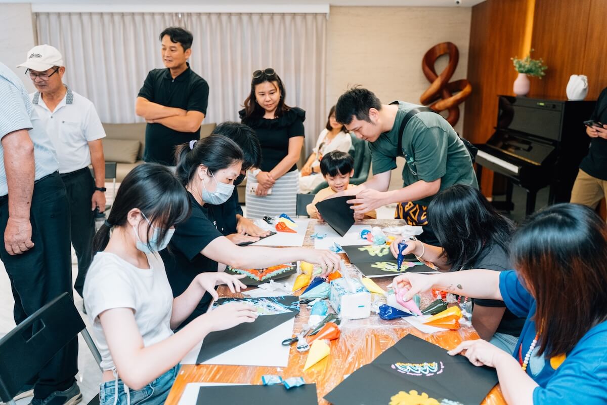 課堂上,有小朋友拓印出星空的色彩與模樣,也有家長透過線條描繪出蝴蝶的脈絡。一幅幅作品在紙上展開,也悄悄編織起社區裡的情感網絡,透過社區住戶家庭一同參與,大人與小孩共同動手創作,不僅是親子間的交流,更深化了彼此對「住」的定義。