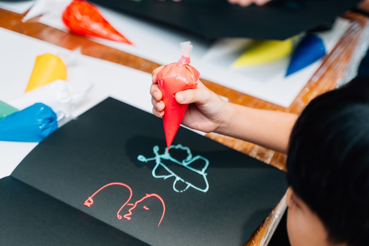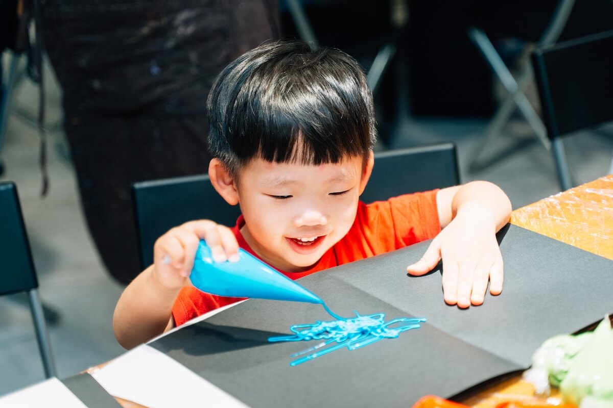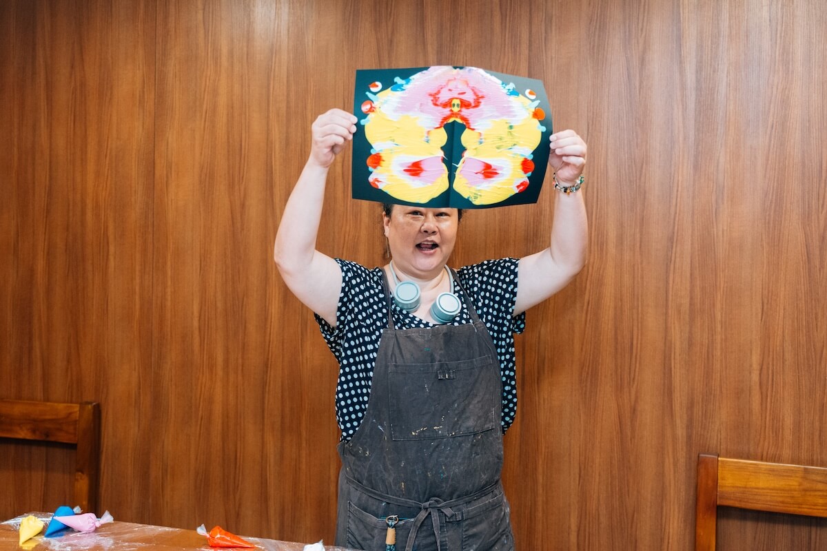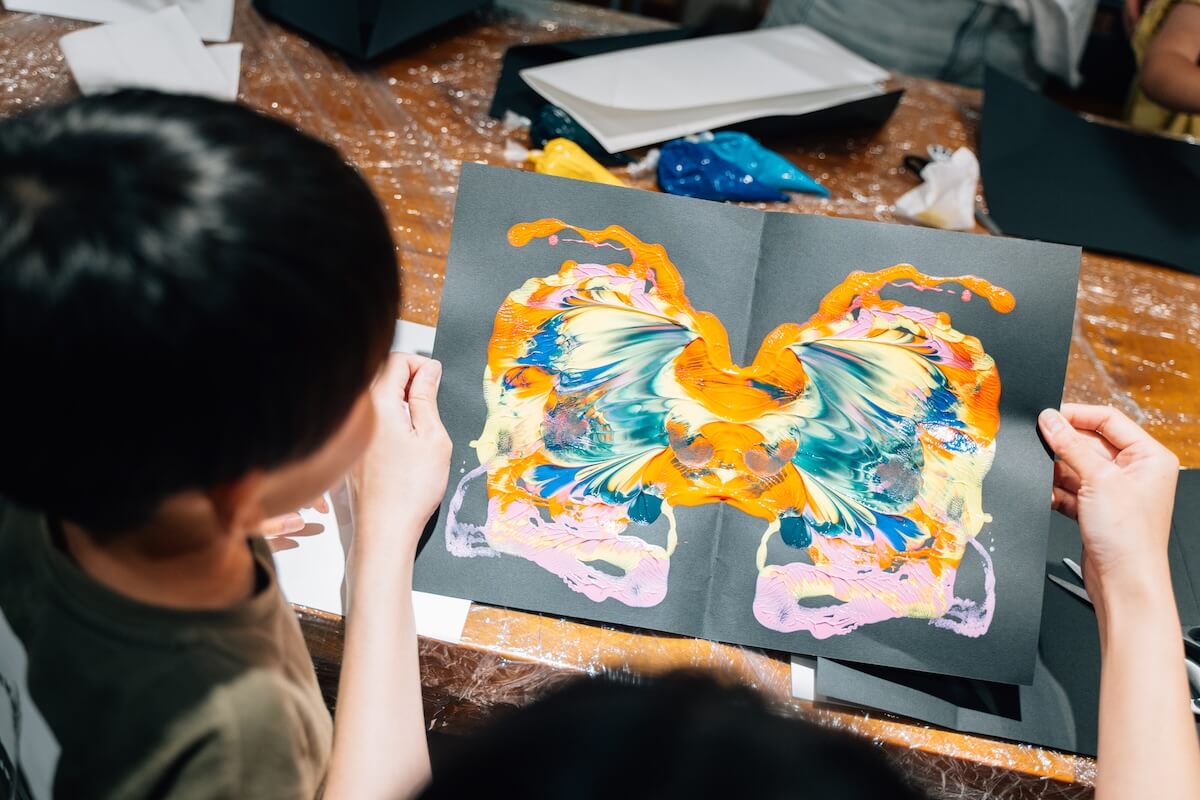 課堂上,有小朋友拓印出星空的色彩與模樣,也有家長透過線條描繪出蝴蝶的脈絡。一幅幅作品在紙上展開,也悄悄編織起社區裡的情感網絡,透過社區住戶家庭一同參與,大人與小孩共同動手創作,不僅是親子間的交流,更深化了彼此對「住」的定義。