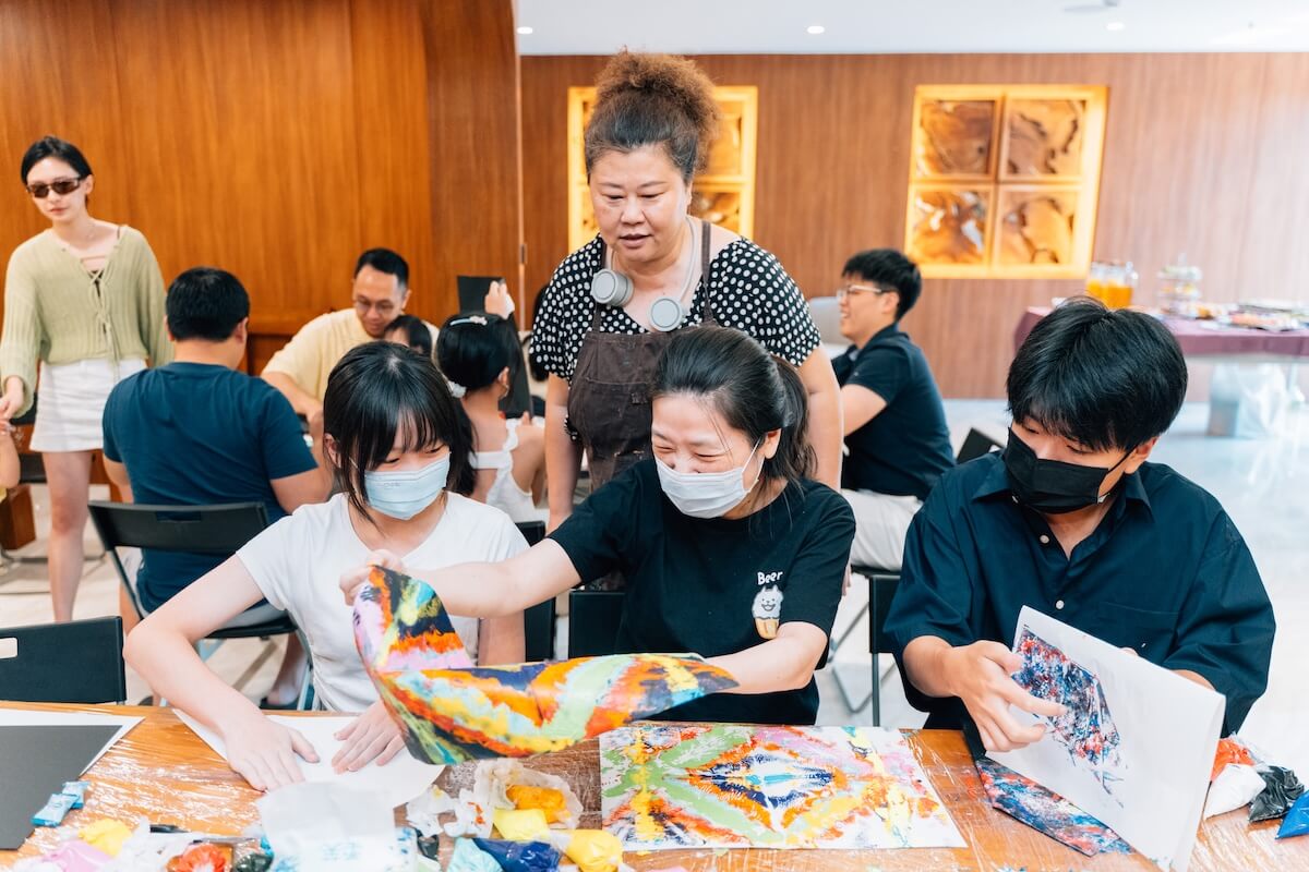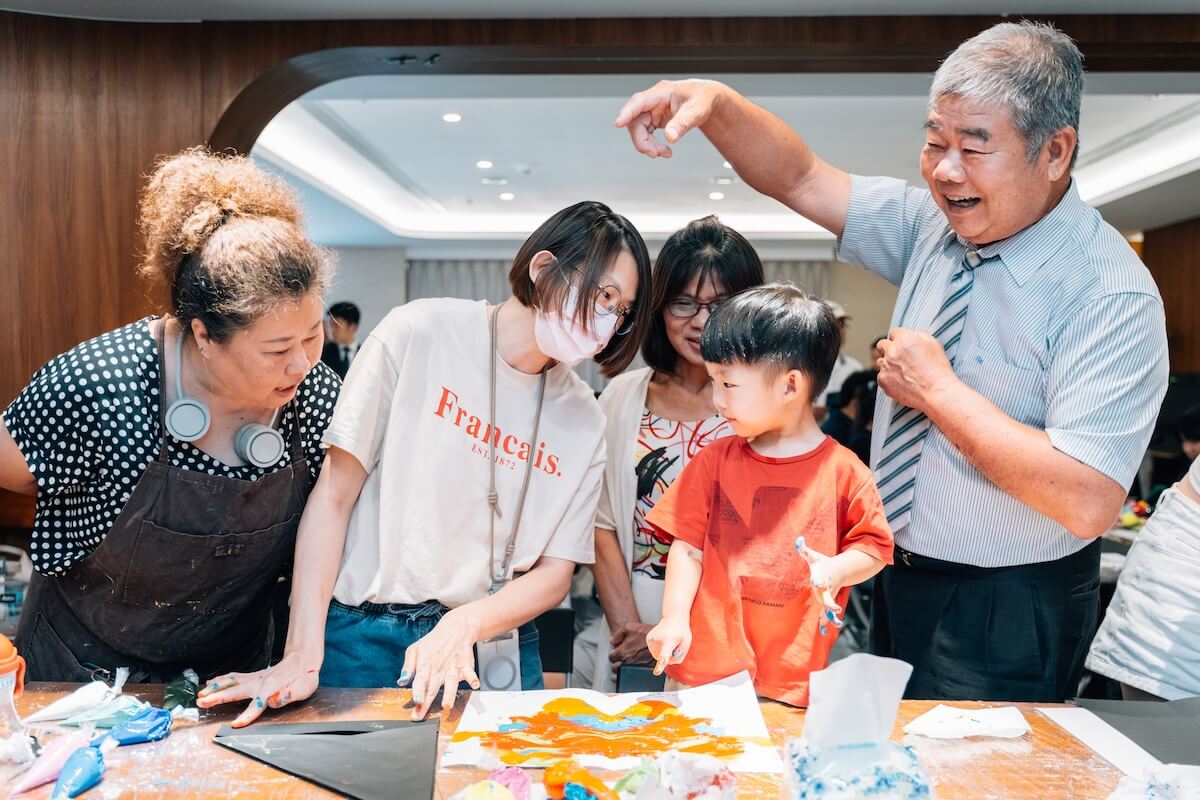 在短短兩小時的活動中,家長與孩子們從中觀察到色彩間相互渲染,從觀察自然、動手實作到完成一幅幅作品,在不知不覺中打開了對美感的感知,也學會用更細膩的方式觀看生活中原本習以為常的事物。