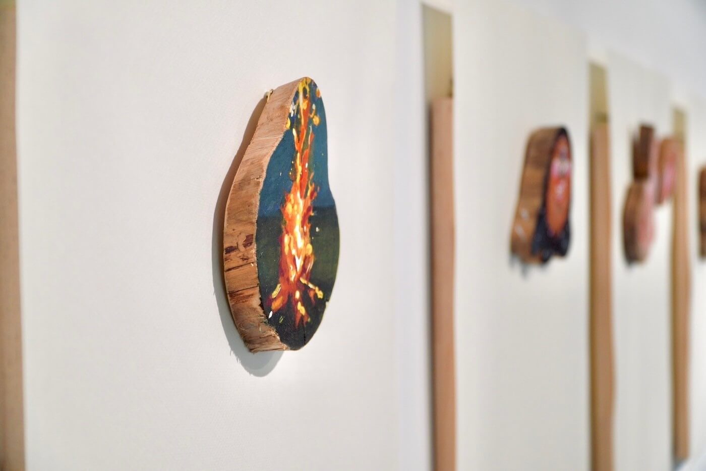 另外,徐嘒壎老師透過「當代影像創作」課程,以影像投影在建案藍白帆布上,打造不同的觀影感受;邱建銘老師則在「西畫媒材運用」與「素描」課程中,透過媒材運用與素描過程中的反覆嘗試,訓練學生解決技術問題的能力,鼓勵嘗試跨媒材的表現方式,讓學生透過素描基礎,將西畫技法表現在廢棄木頭上。