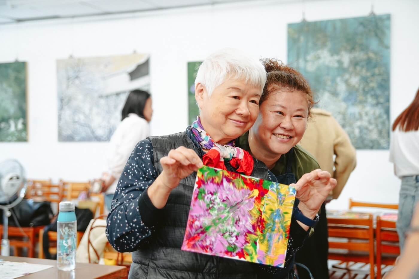 在東海美術系廖敏君助理教授規劃下,與系所內的學生一同帶領25位木匠的家學員們,體驗透過壓克力顏料的層層堆疊與轉印,讓學員們成功創造出各具特色的壓印作品;在這次「匠心再生共創計畫」,正是希望透過資源的整合與跨界合作,為教育與公益注入更多創新的能量,同時也實現宜雄建設永續共好的理念。