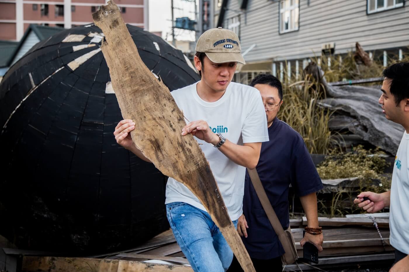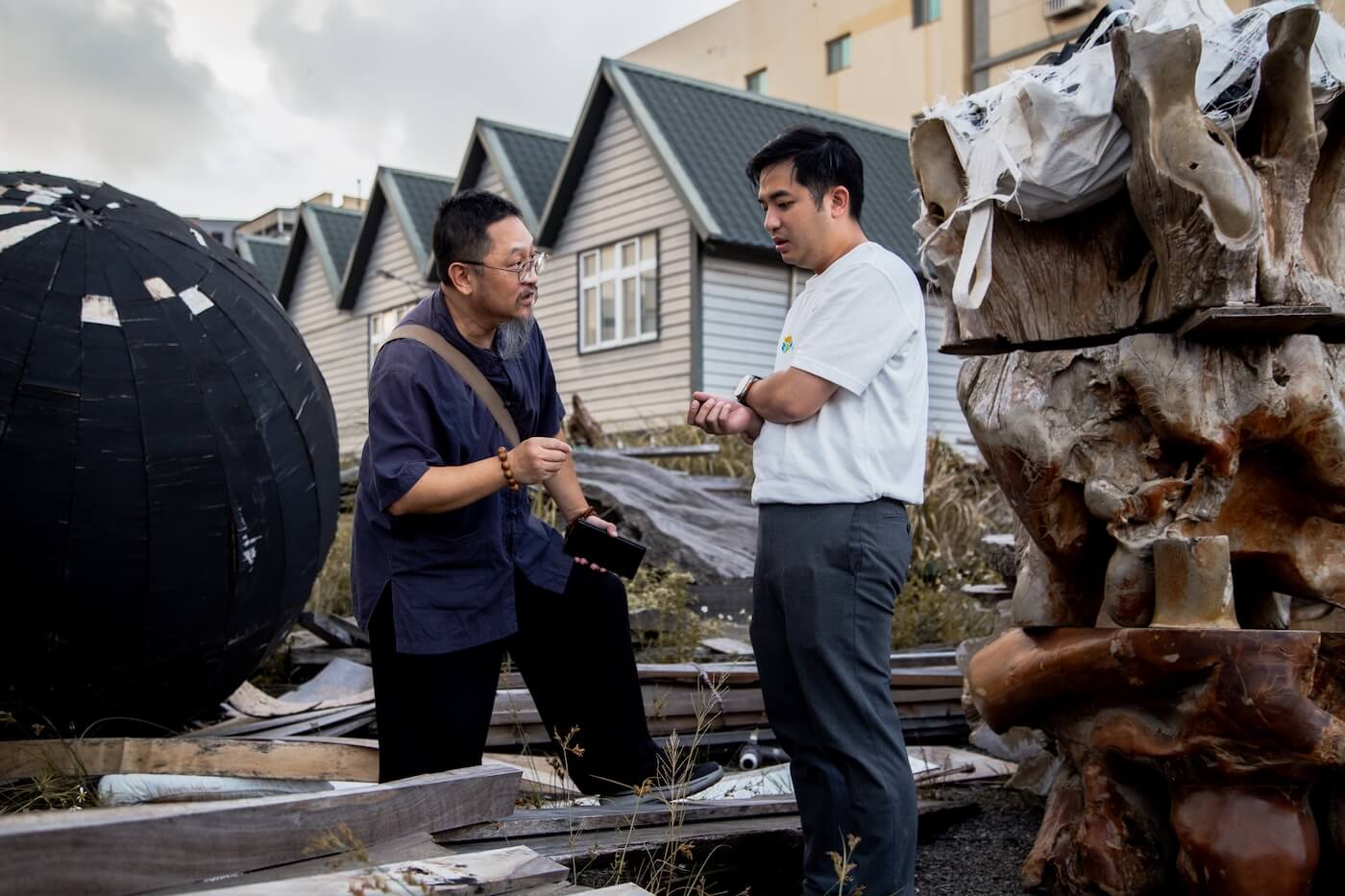 隨後,賴森源董事長也親自帶領老師們參觀三個案場尋找「可用之材」。由此,開啟了這趟教學合作計畫,老師引導學生們思考,如何讓這些曾被丟棄的材料,以不同媒材與表現形式,轉換成別具個性和造形的作品。